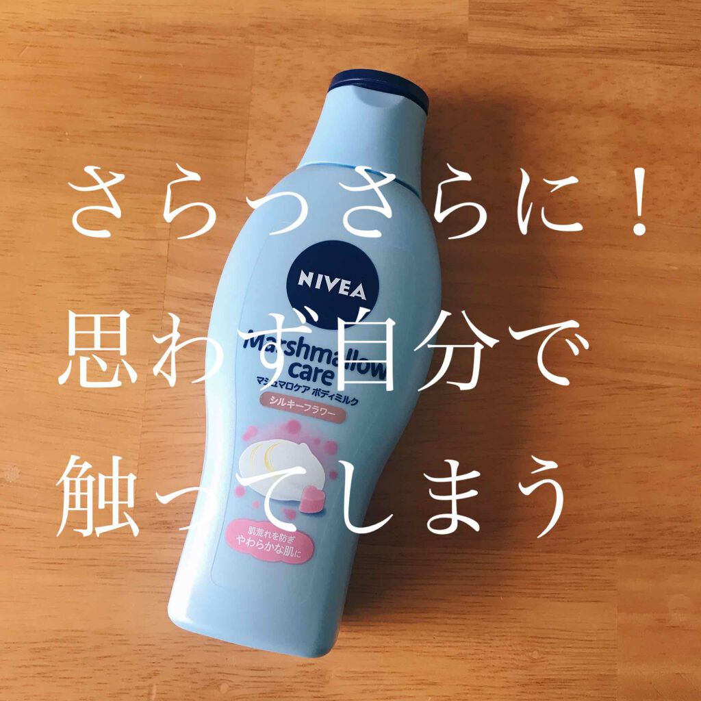 ニベア マシュマロケアボディミルク シルキーフラワーの香り 200ml💐軽やかに可憐なシルキーフラワーの香りスーッと伸びる塗りごごち!塗ってしばらくはぺたぺた感とオイル?のぬるっと感あるけど馴染むとしっとりなめらかな感じに!夜塗って朝起き...