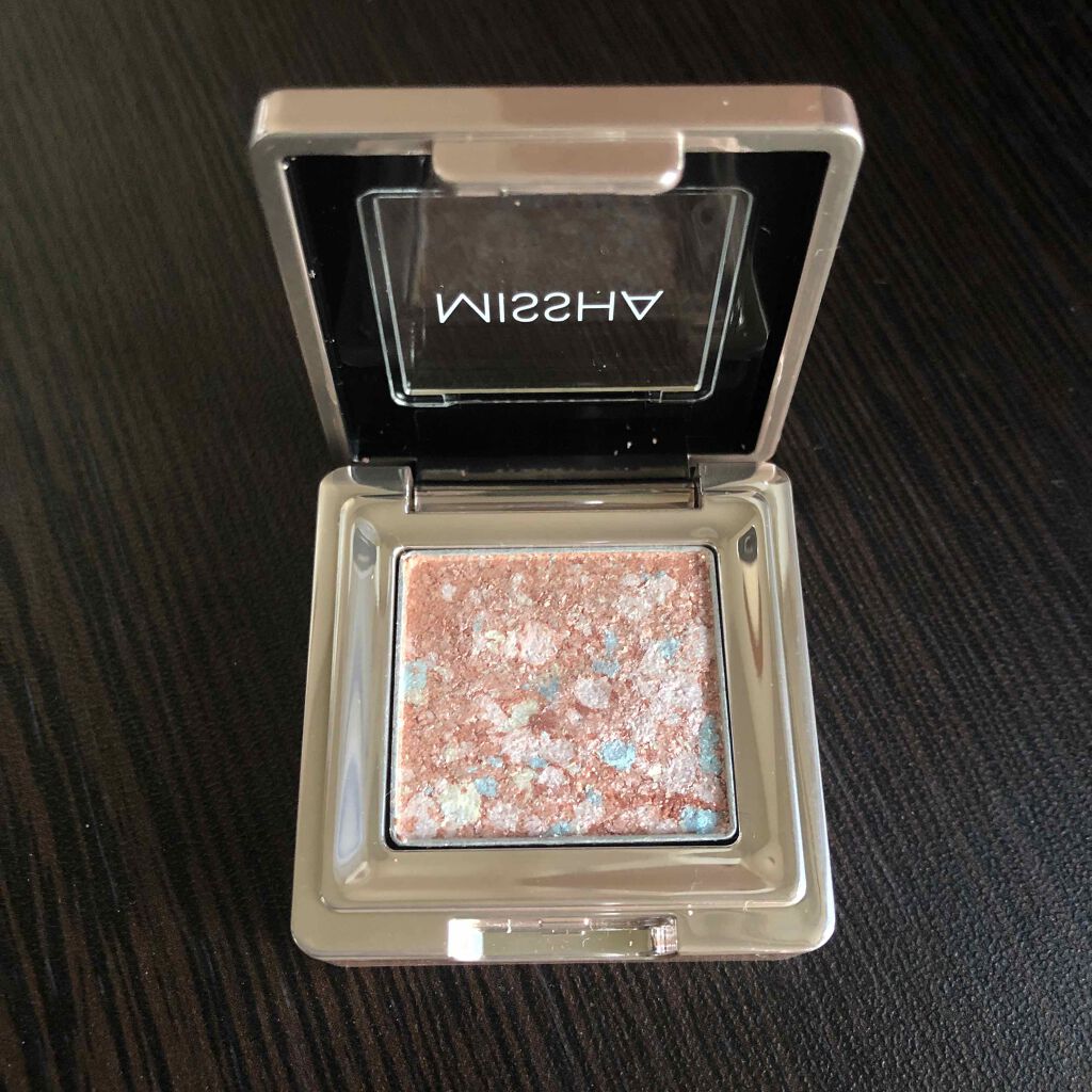 MISSHAグリッタープリズムシャドウGOR01マンゴープリズムこちらサッとひと塗りいい感じにさせてくれるアイシャドウです〜ラメが繊細で綺麗です〜塗るとオレンジ系でも、控えめなオレンジでカジュアルな格好に丁度良く合います〜本当に朝化粧する時間...