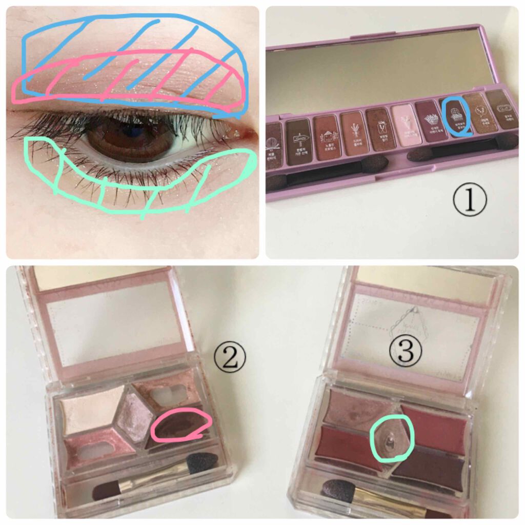 ラメが好きです🌹#エチュードハウスのアイシャドウパレットに入ってる偏光ラメがかわいくてかわいくて…!!!ベースがブラウンだと白っぽいラメが際立つ🥰①アイホールに、指で一番左の色を乗せる涙袋はブラシで。②瞼半分くらいに、指で左から二番目の色を乗...