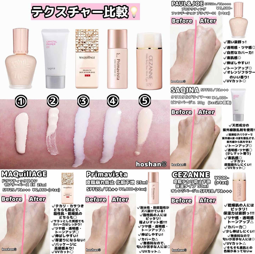 PAUL&JOEBEAUTEプロテクティングプライマー00SPF50+PA++++色は白みのあるピンクでトーンアップされます!少しツヤのある仕上がりに感じました。しっとりしていて乾燥は特に感じませんでした。やはり使いやすく人気のある定番商品な...