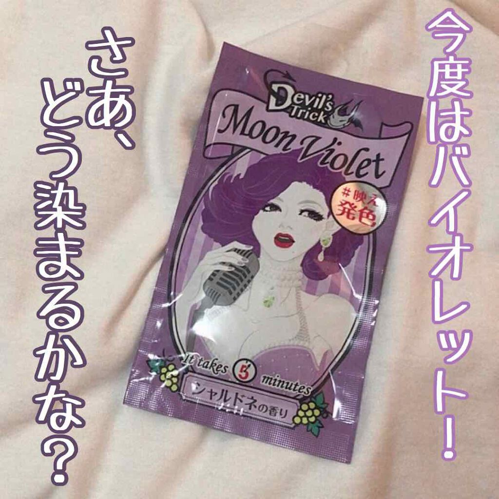 - 傷んだ髪ほどよく染まるヘアカラートリートメントで、“常色"はずれの映え発色! 素手で簡単5分、イオンカラーでツヤさら髪色チェンジ! 約1週間でもとの髪色に戻るから、流行カラーも気軽に試せます。 カラー剤とは思えないフルーツなどの香りで、カラーリング中も楽しめます♪ ※仕上がりの色は元の髪色・傷み具合・髪質によって個人差があります。 ※健康毛や暗い髪・白髪には発色しないことがあります。 <Devil’s 魔法の秘密> ①5分で髪色チェンジ!簡単+イオンカラー® イオン化した+の色素を傷んだ髪に多い-のイオンとくっつけるから発色キレイ♪ 素手でOK! シャンプーすれば1weekで魔法がとけて元通り! ②傷みを集中ケア★ツヤさら髪に変身 保湿成分「ホホバ種子油」「ツバキ種子油」配合で髪にたっぷり潤い満タン。驚きのツヤ髪に! ※頭皮につけないようにご注意ください。 ※素手で塗布したあとはすぐに石けんで手を洗ってください。