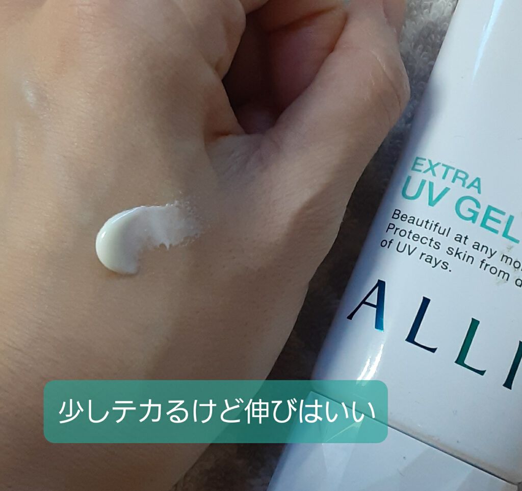 姉からのお下がりの日焼け止め。「私には合わんかったからあげる」ともらった日焼け止め姉のことだからまた飽きたんだと思う😅アリィーエクストラUVハイライトジェルSPF50・PA++++60g薄いグリーンで柔らかいテクスチャーのジェル非常に透明感、...