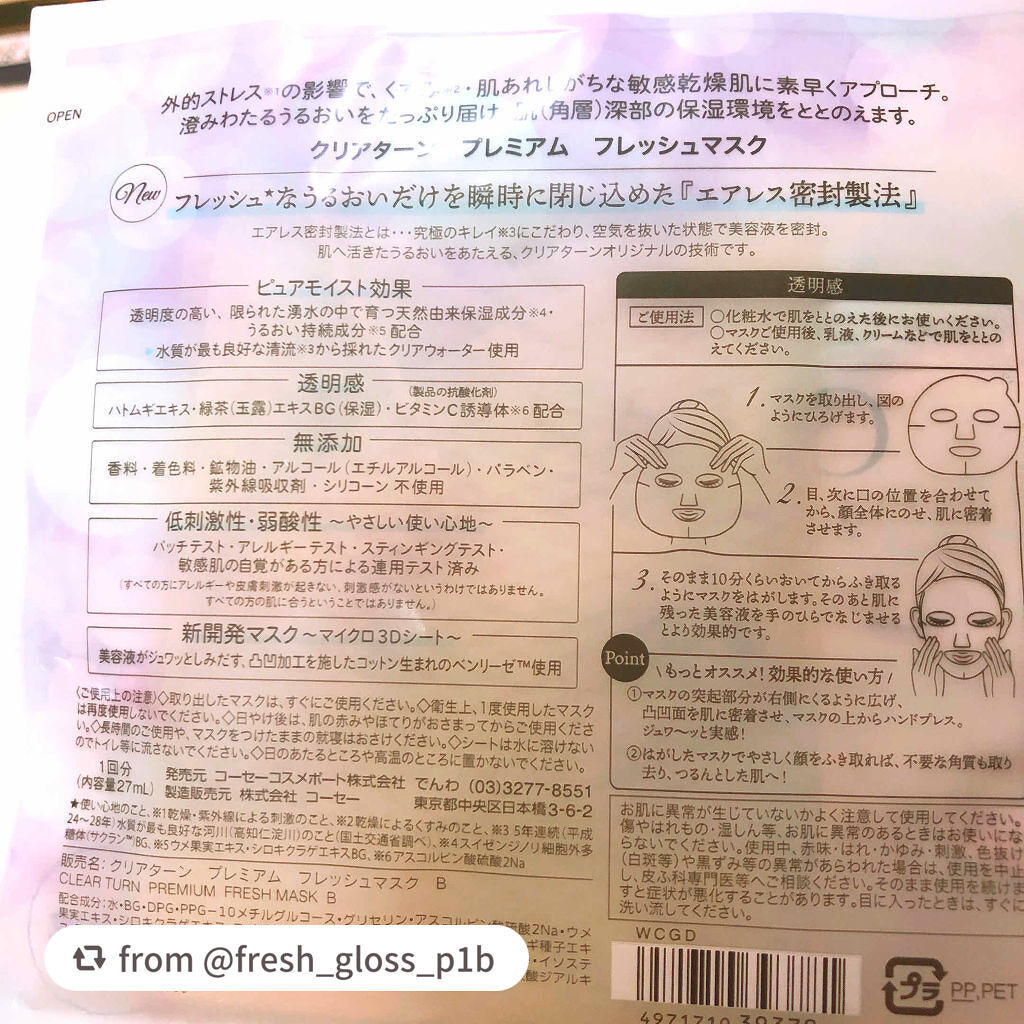 商品詳細情報クリアターン プレミアム フレッシュマスク(透明感)