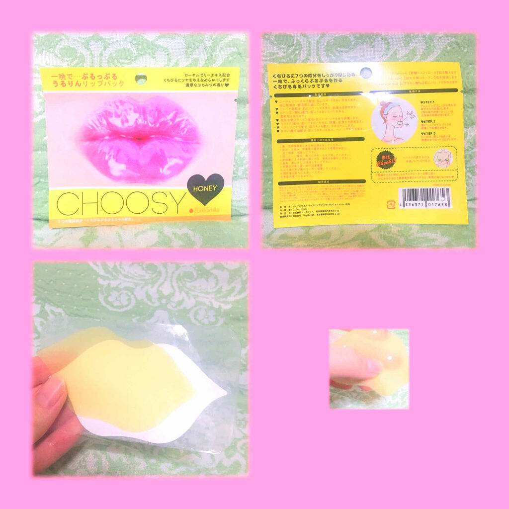 【CHOOSY】リップパックピーチ(唇パック)唇パックに使用。使用感は、唇が潤い、とても良かった!バストにも使用できるみたい!#CHOOSY#リップパック#パックシート#フェイスパック#ピュアスマイル#...