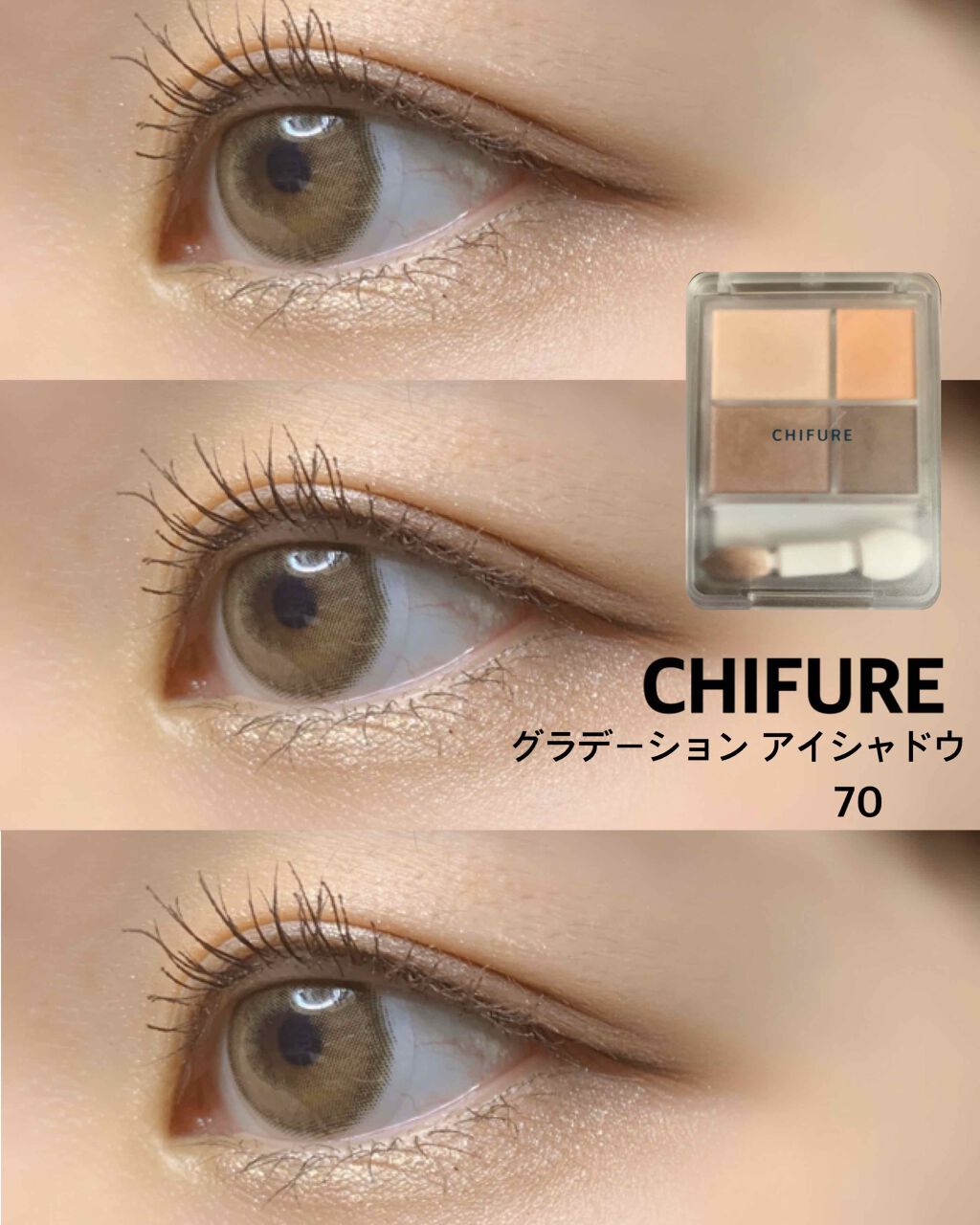 ちふれグラデーションアイシャドウ70ピンクブラウン肌馴なじみの良いピンクブラウンシャドウ🩷🤎ふんわりしたピンクブラウンでやさしい印象の目元になれる︎💕︎︎締め色以外の3色はパールが入ってて、左上はベースカラー、左下を中間カラーとして塗って、締...