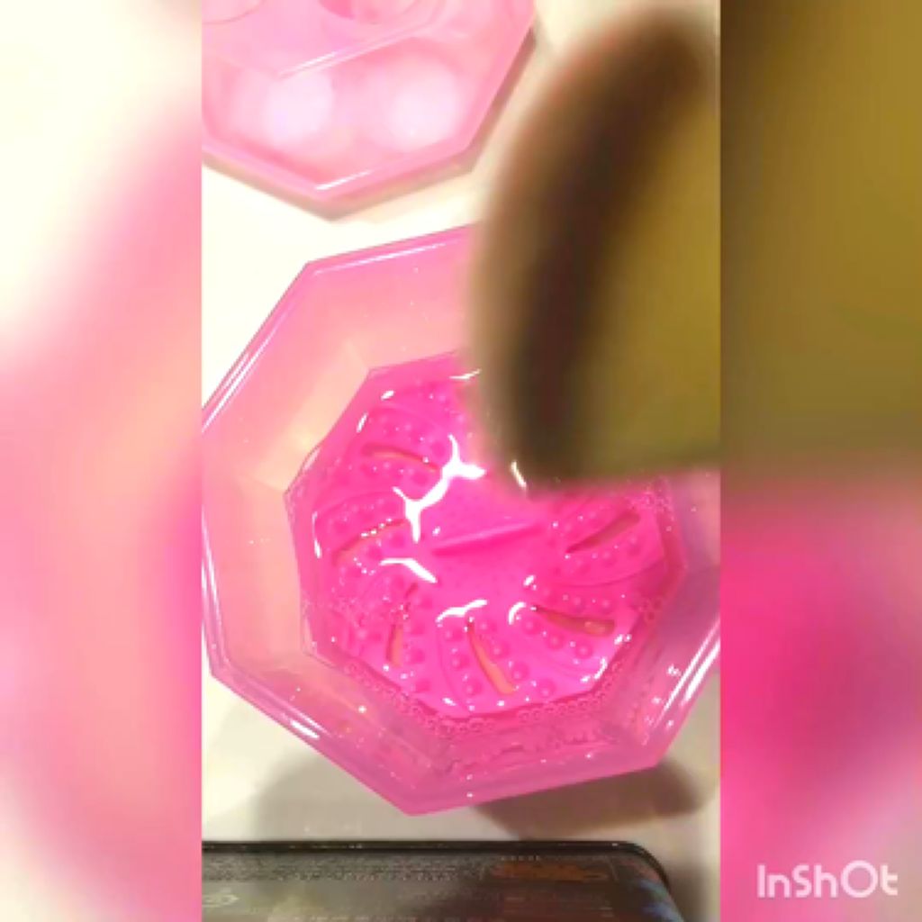 - メイクブラシの皮脂や汚れをきれいに落とします。 くるくる回すだけです。 ブラシの汚れがみるみる落ちます。 洗浄板の中央付近の小さな突起はアイブロウブラシなど毛先の短いブラシも洗えます。