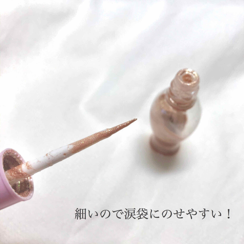 ほっそ〜い筆でピンポイントにラメがのる⟡.* 涙袋がぷっくりきらめくグリッター✨️✨️ 筆にはたっぷりのラメが付いてくるのでへりで落としてからさらに手の甲などで整えてから黒目の下にピンポイントにのせると光が黒目に映ってきゅるんとした瞳に🥺💖 ただでさえ1000円以下で買えるのになっかなか減らないのでコスパ最強です!!