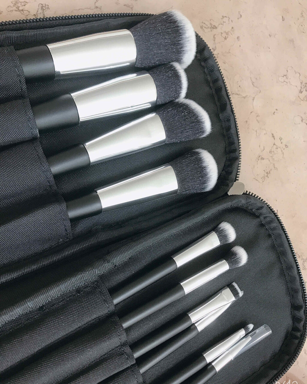 - お化粧に必要な化粧筆をほぼすべて網羅したメイクブラシセット。 3本は高級天然毛(馬)をふんだんに使用。上質なレザー風化粧ポーチ付き。