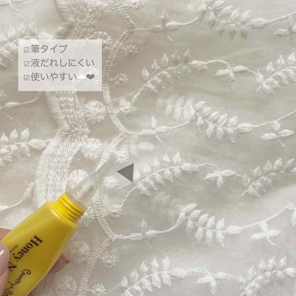 - 美しい爪のためのハチミツ(保湿成分)のネイルオイル ●ハチミツやオーガニックオイルなどの保湿美容成分を配合したネイルオイルです。 ●ジェルオイルなので液だれしにくく、どこでも気になった時にケアできます。 ●使いやすい筆タイプ。