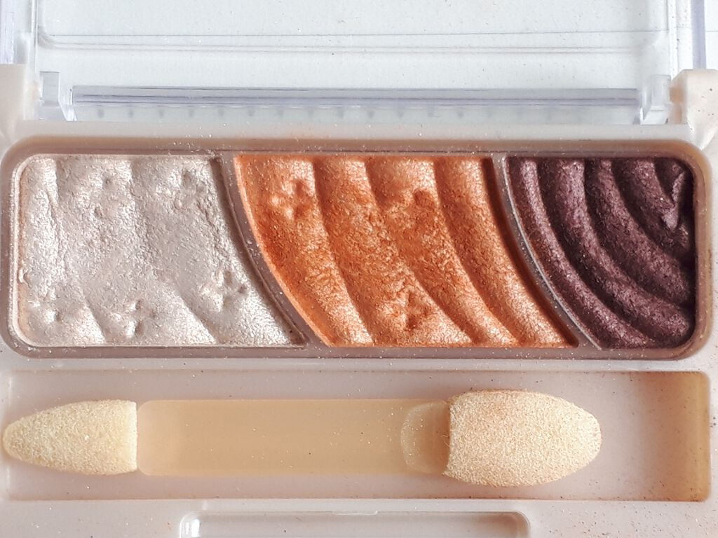- 3色で簡単に明るく大きな目元に。 しっとり感触のアイシャドウ。 くすみを飛ばす明るさベース、ひとえ・奥二重の方でも幅広く塗れる肌なじみの良い中間色、 濃密高発色の締め色が目の輪郭を強調し大きな目元に。 微細パール配合でくすみを飛ばし、明るい目元へ。