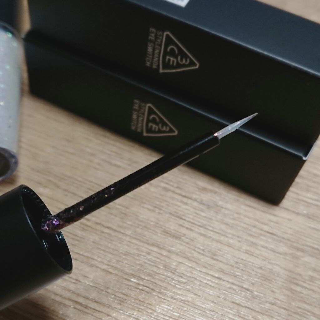3CEアイスイッチ全5色スウォッチ💫長年愛用している大好きなアイテム。アプリケーターがブラシではなくプラスチック、細くて弾力のある描きやすいラメライナーです。輝きも強くて目元がキラッキラになります。フィード投稿もあるのでまとめ欄の3CEから見...