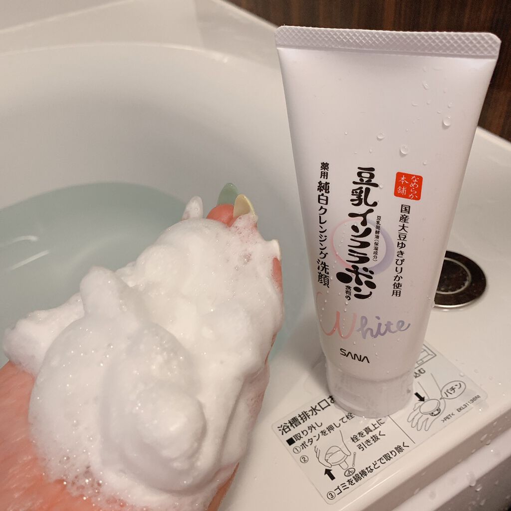 - 豆乳発酵液、肌荒れ防止有効成分*1に加え、ビタミンC誘導体*2を配合。洗いながら、うるおいと透明感のある肌に導きます。もこもこ泡でクレンジング力もアップし、毛穴の中まですっきりキレイに。 *1 グリチルリチン酸ジカリウム(薬用クレンジング洗顔 N、薬用美白ミスト化粧水、とろんと濃ジェル 薬用美白 N) *2 リン酸L‐アスコルビルマグネシウム(保湿成分)