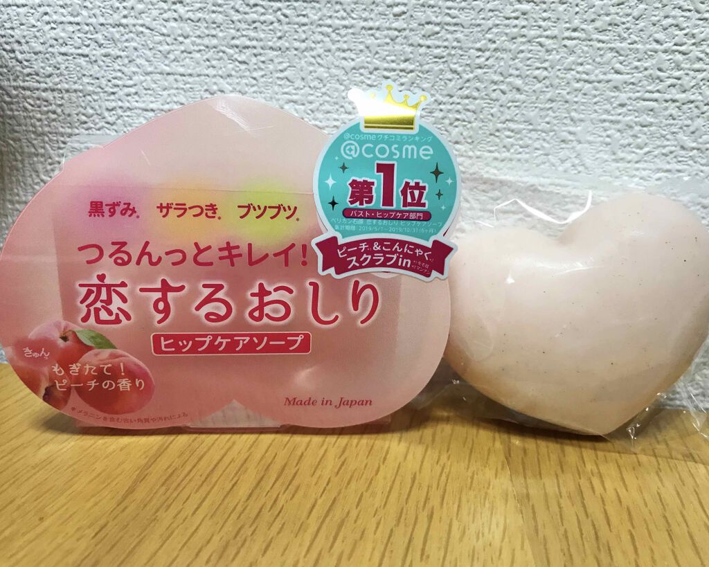 - 恋するおしり ヒップケアソープ おしりの黒ずみ・ザラつき・ブツブツにくるくる直接洗いの簡単ケア! (1)余分な古い角質を落とす:角質ケア スクラブ※1&ピーリング成分※2配合 【モモ核、マンナン※1 グルコノバクター/ハチミツ発酵液、 リンゴ酸・乳酸・クエン酸※2】 (2)必要なうるおいを守る:保湿ケア 6種※3の美容保湿エッセンスを配合 【モモ葉エキス、モモ種子エキス、ビワ葉エキス、キウイエキス、 アーチチョーク葉エキス、アロエベラ液汁※3】 ◎「きゅんっ」とする もぎたて!ピーチの香り