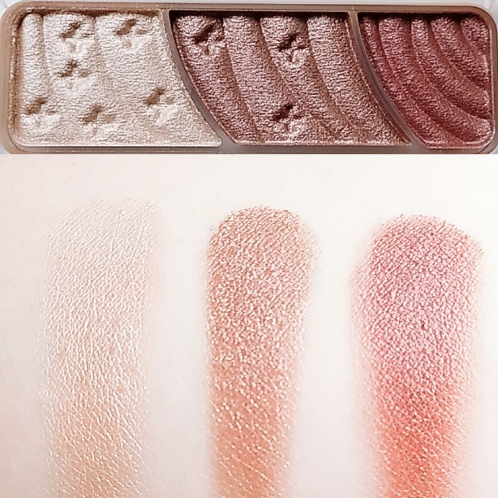 - 3色で簡単に明るく大きな目元に。 しっとり感触のアイシャドウ。 くすみを飛ばす明るさベース、ひとえ・奥二重の方でも幅広く塗れる肌なじみの良い中間色、 濃密高発色の締め色が目の輪郭を強調し大きな目元に。 微細パール配合でくすみを飛ばし、明るい目元へ。