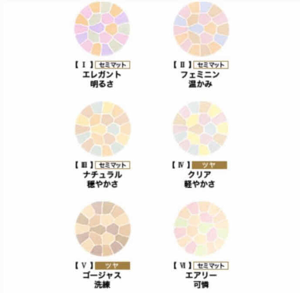 - <Ⅰ> タルク、ナイロン-12、ジステアリン酸Al、スクワラン、(ジヒドロキシメチルシリルプロポキシ)ヒドロキシプロピル加水分解シルク、アルテア根エキス、アルニカ花エキス、ガマ穂エキス、グリチルリチン酸2K、パール、BG、イソステアリン酸ソルビタン、メチコン、水、水酸化Al、フェノキシエタノール、プロピルパラベン、メチルパラベン、香料、グンジョウ、マイカ、酸化チタン、酸化鉄、硫酸Ba、赤226 <Ⅱ> タルク、ナイロン-12、ジステアリン酸Al、スクワラン、(ジヒドロキシメチルシリルプロポキシ)ヒドロキシプロピル加水分解シルク、アルテア根エキス、アルニカ花エキス、ガマ穂エキス、グリチルリチン酸2K、パール、BG、イソステアリン酸ソルビタン、メチコン、水、水酸化Al、フェノキシエタノール、プロピルパラベン、メチルパラベン、香料、グンジョウ、マイカ、酸化チタン、酸化鉄、硫酸Ba、赤226 <Ⅲ> タルク、ナイロン-12、ジステアリン酸Al、スクワラン、(ジヒドロキシメチルシリルプロポキシ)ヒドロキシプロピル加水分解シルク、アルテア根エキス、アルニカ花エキス、ガマ穂エキス、グリチルリチン酸2K、パール、BG、イソステアリン酸ソルビタン、メチコン、水、水酸化Al、フェノキシエタノール、プロピルパラベン、メチルパラベン、香料、グンジョウ、マイカ、酸化チタン、酸化鉄、硫酸Ba、黄4、赤226 <Ⅳ> タルク、ナイロン-12、ジステアリン酸Al、スクワラン、(ジヒドロキシメチルシリルプロポキシ)ヒドロキシプロピル加水分解シルク、アルテア根エキス、アルニカ花エキス、ガマ穂エキス、グリチルリチン酸2K、パール、BG、イソステアリン酸ソルビタン、メチコン、水、プロピルパラベン、メチルパラベン、香料、(+/-)、グンジョウ、マイカ、酸化チタン、酸化鉄、水酸化Al、硫酸Ba、黄4、赤226 <Ⅴ> タルク、ナイロン-12、ジステアリン酸Al、スクワラン、(ジヒドロキシメチルシリルプロポキシ)ヒドロキシプロピル加水分解シルク、アルテア根エキス、アルニカ花エキス、ガマ穂エキス、グリチルリチン酸2K、パール、BG、イソステアリン酸ソルビタン、メチコン、水、プロピルパラベン、メチルパラベン、香料、(+/-)、マイカ、酸化チタン、酸化鉄、水酸化Al <Ⅵ> タルク、ナイロン-12、ジステアリン酸Al、スクワラン、(ジヒドロキシメチルシリルプロポキシ)ヒドロキシプロピル加水分解シルク、アルテア根エキス、アルニカ花エキス、ガマ穂エキス、グリチルリチン酸2K、パール、BG、イソステアリン酸ソルビタン、メチコン、水、フェノキシエタノール、プロピルパラベン、メチルパラベン、香料、グンジョウ、マイカ、酸化チタン、酸化鉄、水酸化Al、硫酸Ba、赤226 <VIII イノセント> タルク、ナイロン−12、ジステアリン酸Al、スクワラン、(ジヒドロキシメチルシリルプロポキシ)ヒドロキシプロピル加水分解シルク、アルテア根エキス、アルニカ花エキス、ガマ穂エキス、グリチルリチン酸2K、パール、BG、イソステアリン酸ソルビタン、メチコン、水、水酸化Al、フェノキシエタノール、プロピルパラベン、メチルパラベン、香料、グンジョウ、マイカ、酸化チタン、酸化鉄、赤226