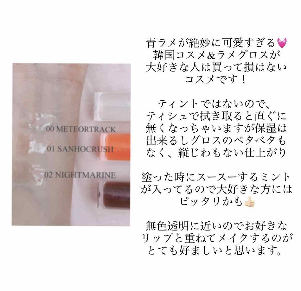- LIPSベストコスメ2022 グロス部門3位LIPSベストコスメ2022上半期 こだわりアワード リップ部門 ツヤ賞 第2位LIPSベストコスメ2020年間 下半期新人 小カテゴリ リップグロス 第2位