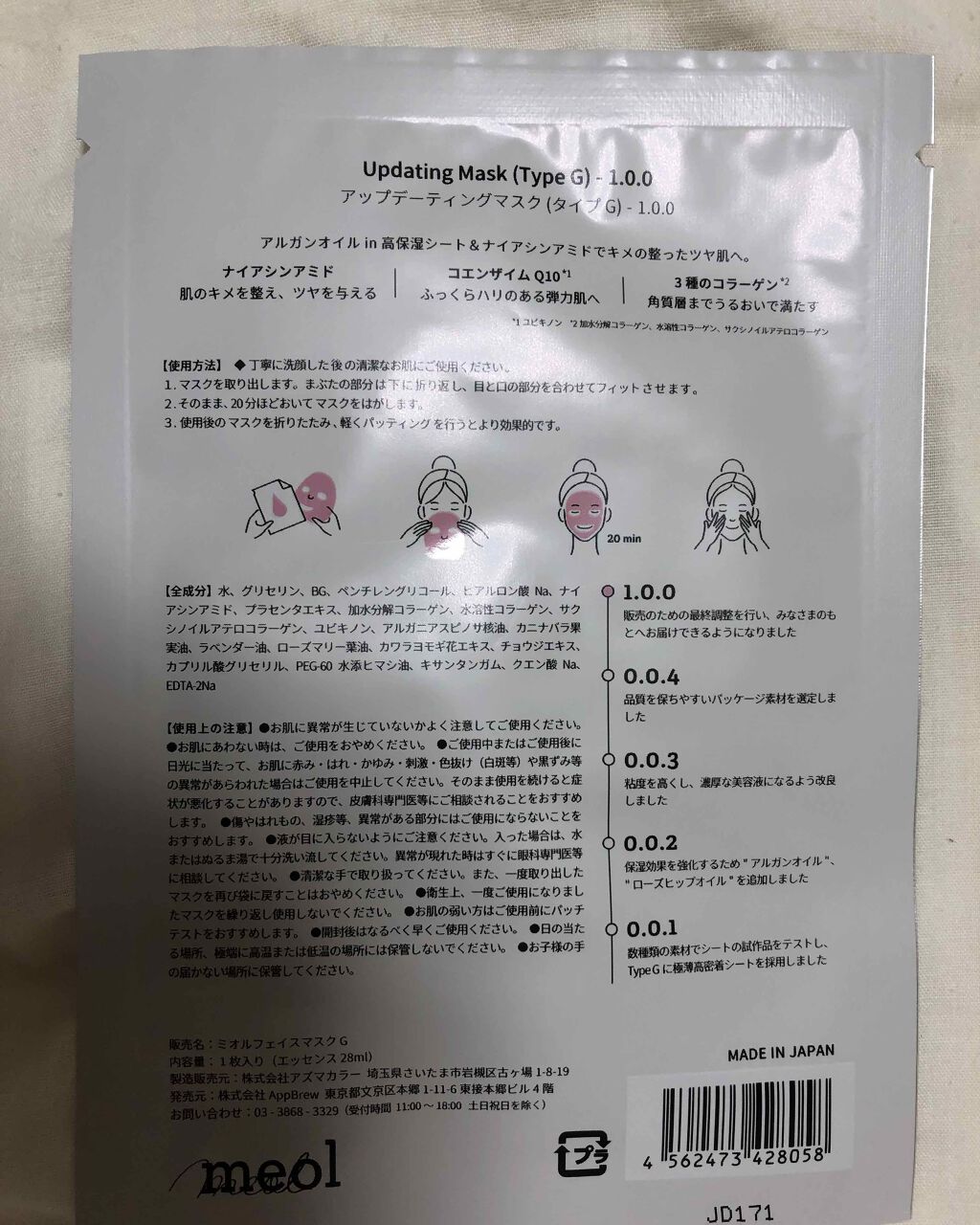 meol Updating Mask 1.0.0 Type M(保湿)/moisture 1セット5枚入り | 2,000円生産終了 |