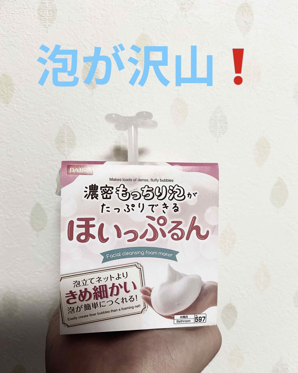 DAISOのもちふわホイッパー買ってみました。予想以上の泡の密度。洗顔は摩擦レスは基本。この泡を顔にボフッとあてて、ボフボフするだけ。極上の泡に包まれましょう。フックに引っかけられますよ😍#DAISO#もちふわホイッパー...