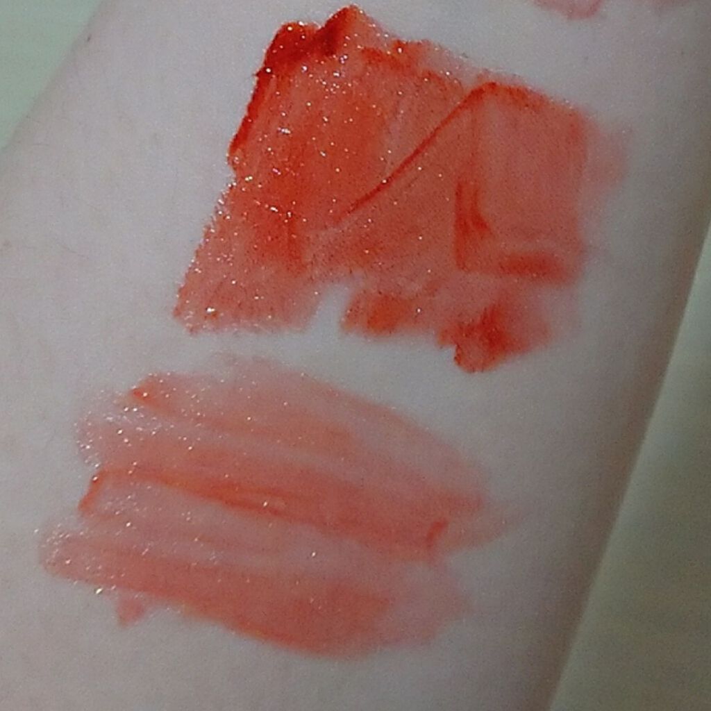 #えりぃのスウォッチです。#ロムアンド#romand#ジュシーラスティングティント22ポメロスキンピンクベージュカラーです。ベージュの中にピンク味があるので、血色感が感じられます。ベースリップとしても!23ヌカダミアポメロスキンより赤みがあり...