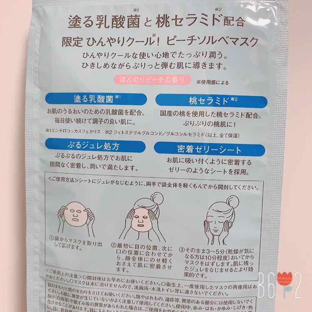 | 桃の香りがめっちゃいい香りすぎる! パック中幸せな気分になれる🍑🫧 柔らかいシートで肌にピタッと密着します。 | 詳細を見る |