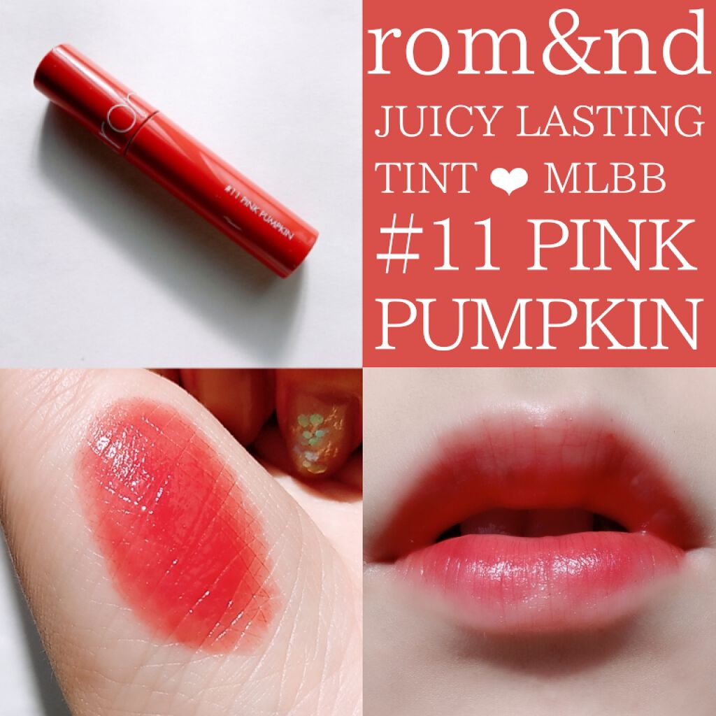 rom&ndジューシーラスティングティント#11ピンクパンプキン✼••┈┈••✼••┈┈••✼••┈┈••✼••┈┈••✼\私の愛用ティント…💕/rom&nd(ロムアンド)の大人気ティント、ジューシーラスティングティント手に出してみた瞬間、う...