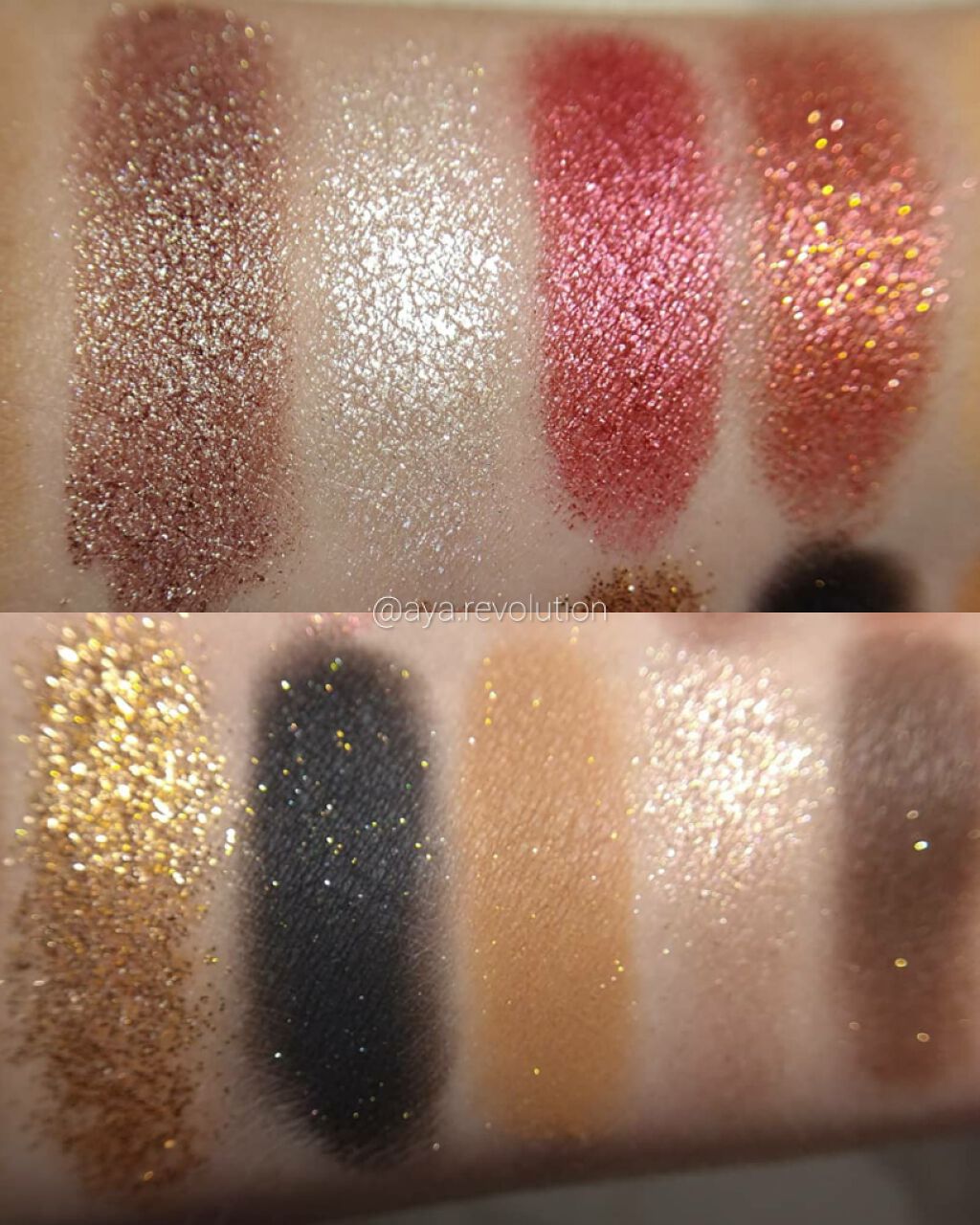KATE エレクトリックショックアイズ 全8色のうち6色購入🤣 KATEは推しブランドなのでいつも色ち買いしてしまう。 ギラッギラの多色ラメがめっちゃ可愛い❤️ まさに電撃発光シャドウ⚡ 左側は透け感のある発色、ブラシによっては発色しにくいかもしれない🤔 右側は大粒なグリッター、大粒だけどジャリジャリせず厚みは薄く形は均一ではなくランダム。 PU-1とNV-1は左側が得意な色では無いので買わなかったけど絶対可愛い… このパレットだけでももちろん可愛いのですが私は締め色強めのメイクが好きなので次からはしっかり締め色も一緒に使いたい。