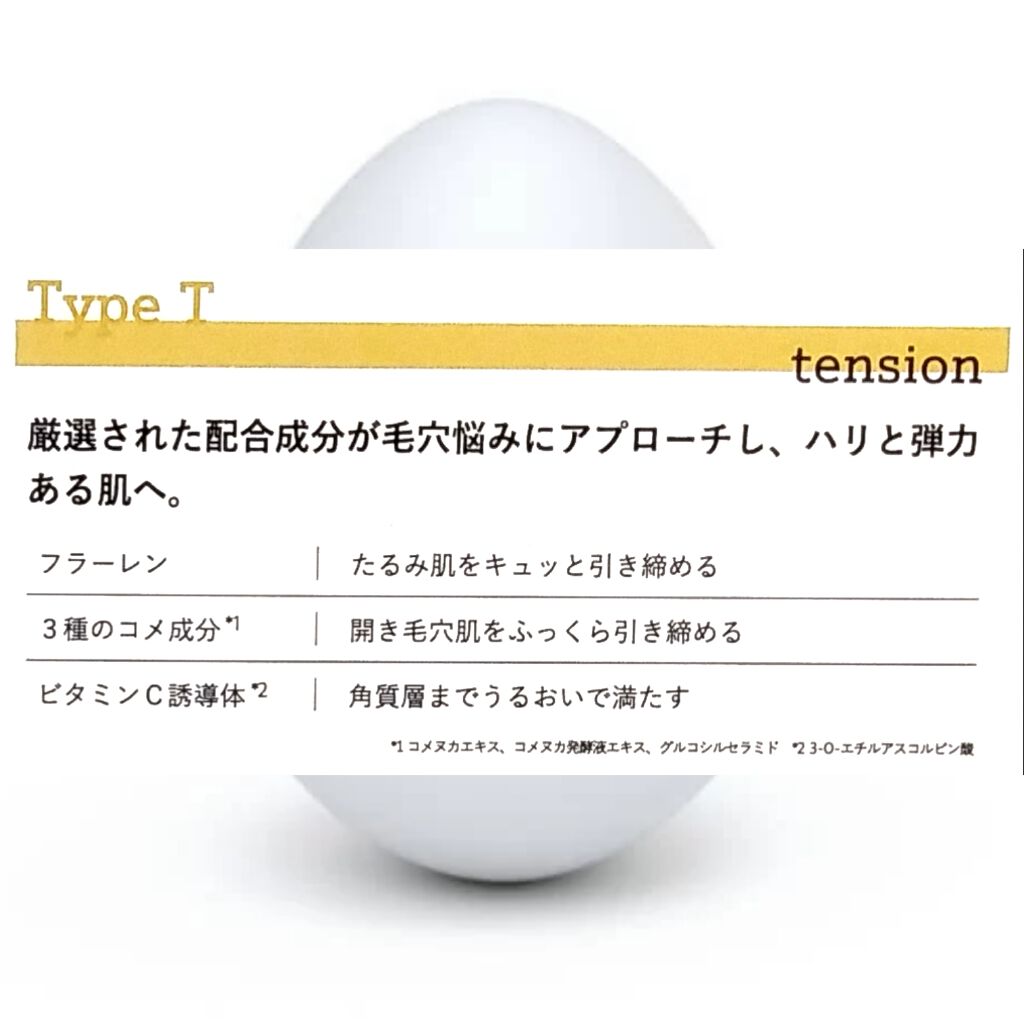 - 厳選された配合成分が毛穴悩みを全方位から解決し、ハリと弾力ある肌へ。 フラーレン:たるみ肌をキュッと引き締める 3種のコメ成分*1:開き毛穴をふっくら整える ビタミンC誘導体*2:角質層までうるおいで満たす *1 コメヌカエキス、コメヌカ発酵液エキス、グルコシルセラミド *2 3-O-エチルアスコルビン酸