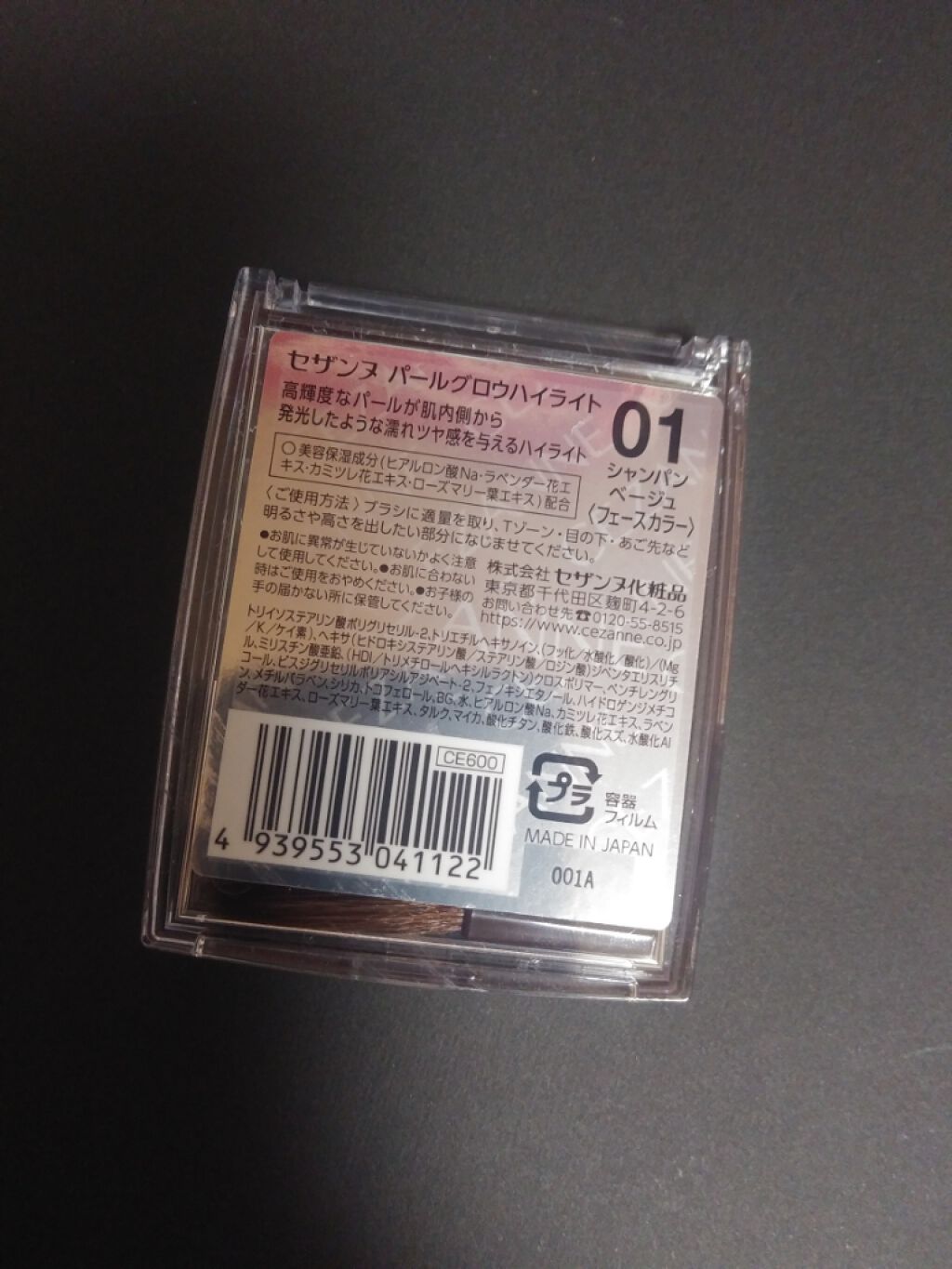 - <01 シャンパンベージュ> トリイソステアリン酸ポリグリセリル-2、トリエチルヘキサノイン、(フッ化/水酸化/酸化)/(Mg/K/ケイ素)、ヘキサ(ヒドロキシステアリン酸/ステアリン酸/ロジン酸)ジペンタエリスリチル、ミリスチン酸亜鉛、(HDI/トリメチロールヘキシルラクトン)クロスポリマー、ペンチレングリコール、ビスジグリセリルポリアシルアジペート-2、フェノキシエタノール、ハイドロゲンジメチコン、メチルパラベン、シリカ、トコフェロール、BG、水、ヒアルロン酸Na、カミツレ花エキス、ラベンダー花エキス、ローズマリー葉エキス、タルク、マイカ、酸化チタン、酸化鉄、酸化スズ、水酸化Al <02 ロゼベージュ> トリイソステアリン酸ポリグリセリル-2、トリエチルヘキサノイン、(フッ化/水酸化/酸化)/(Mg/K/ケイ素)、ヘキサ(ヒドロキシステアリン酸/ステアリン酸/ロジン酸)ジペンタエリスリチル、ミリスチン酸亜鉛、(HDI/トリメチロールヘキシルラクトン)クロスポリマー、ペンチレングリコール、ビスジグリセリルポリアシルアジペート-2、フェノキシエタノール、ハイドロゲンジメチコン、メチルパラベン、シリカ、トコフェロール、BG、水、ヒアルロン酸Na、カミツレ花エキス、ラベンダー花エキス、ローズマリー葉エキス、タルク、マイカ、酸化チタン、酸化鉄、酸化スズ、水酸化Al <03 オーロラミント> トリイソステアリン酸ポリグリセリル-2、トリエチルヘキサノイン、(フッ化/水酸化/酸化)/(Mg/K/ケイ素)、ヘキサ(ヒドロキシステアリン酸/ステアリン酸/ロジン酸)ジペンタエリスリチル、ミリスチン酸亜鉛、(HDI/トリメチロールヘキシルラクトン)クロスポリマー、ペンチレングリコール、ビスジグリセリルポリアシルアジペート-2、フェノキシエタノール、ハイドロゲンジメチコン、メチルパラベン、シリカ、トコフェロール、BG、水、ヒアルロン酸Na、カミツレ花エキス、ラベンダー花エキス、ローズマリー葉エキス、タルク、マイカ、酸化チタン、合成フルオロフロゴパイト、酸化鉄、酸化スズ、グンジョウ、水酸化Al <04 シェルピンク> トリイソステアリン酸ポリグリセリル-2、トリエチルヘキサノイン、(フッ化/水酸化/酸化)/(Mg/K/ケイ素)、ヘキサ(ヒドロキシステアリン酸/ステアリン酸/ロジン酸)ジペンタエリスリチル、ミリスチン酸亜鉛、(HDI/トリメチロールヘキシルラクトン)クロスポリマー、ペンチレングリコール、ビスジグリセリルポリアシルアジペート-2、フェノキシエタノール、ハイドロゲンジメチコン、メチルパラベン、シリカ、トコフェロール、BG、水、ヒアルロン酸Na、カミツレ花エキス、ラベンダー花エキス、ローズマリー葉エキス、タルク、マイカ、酸化チタン、酸化鉄、グンジョウ、酸化スズ、水酸化Al
