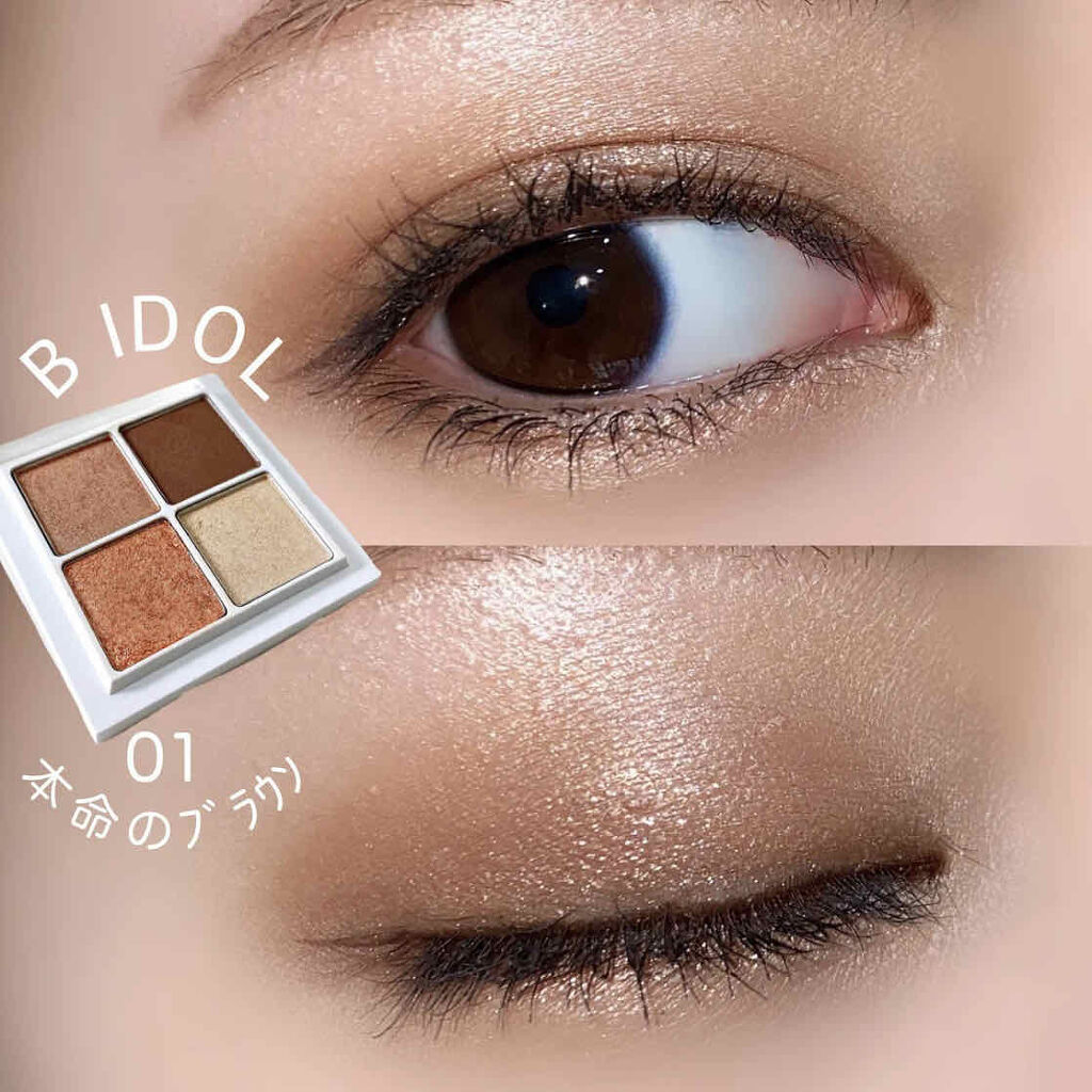 ■BIDOLTHEアイパレ≫01本命のブラウンなんとなく気になって購入したら…これがもう大当たりでした🥺粉質はしっとりだけど、メイクブラシでも粉含み◎🙆♀️ラメ感はギラギラな大粒ラメではなく繊細で綺麗なラメ✨発色も申し分ないし、何より色味が...