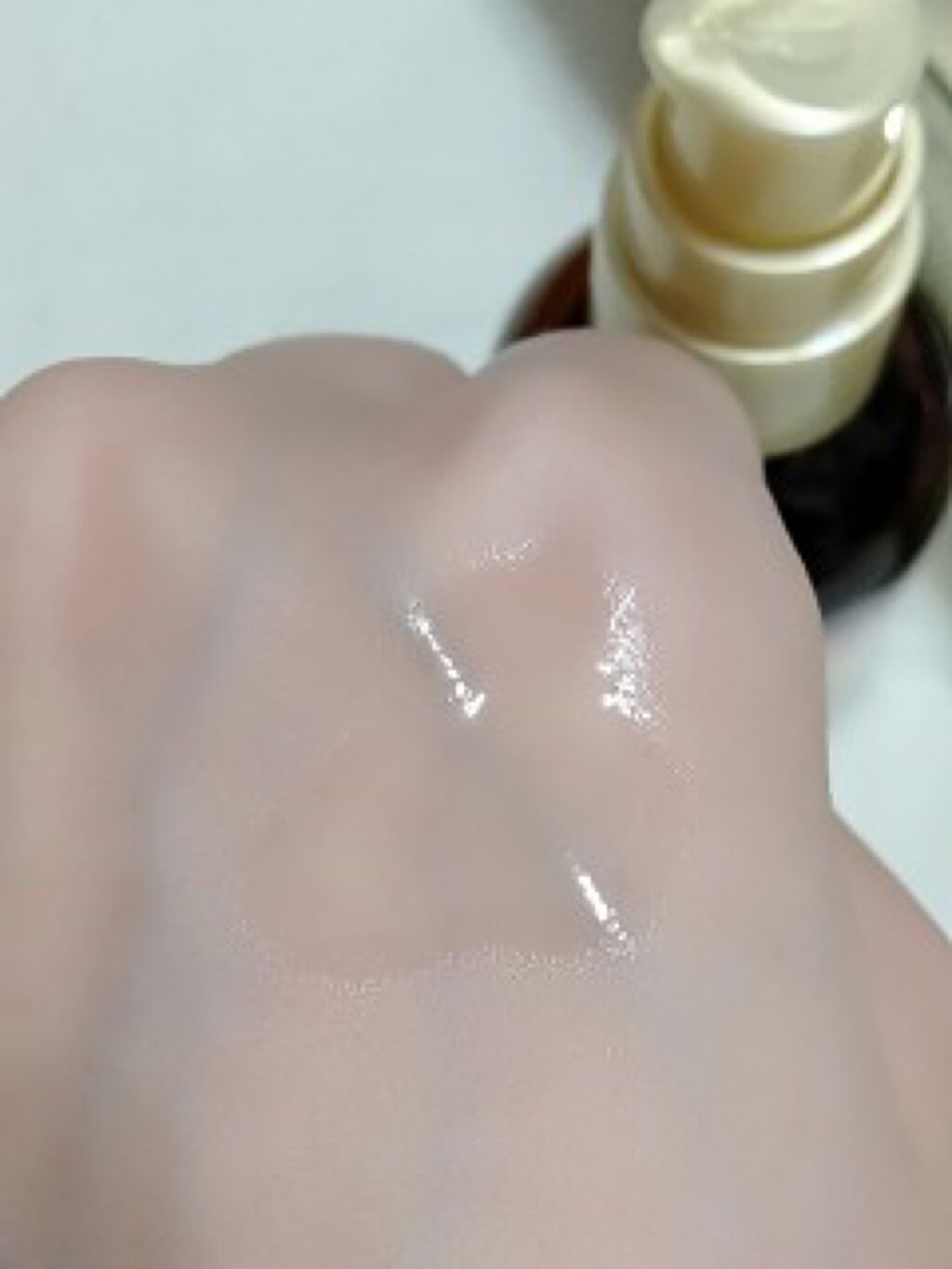 半透明のゆるめのジェルテクスチャー。みずみずしいさらっとした伸びがとても気持ちいい。 美容液は成分が濃いイメージだからとろみやぺたっとしたなじみが多い中、ここまでさっぱりしているなんて驚き。水分と油分のバランスを整え、毛穴も引き締まるから過剰...