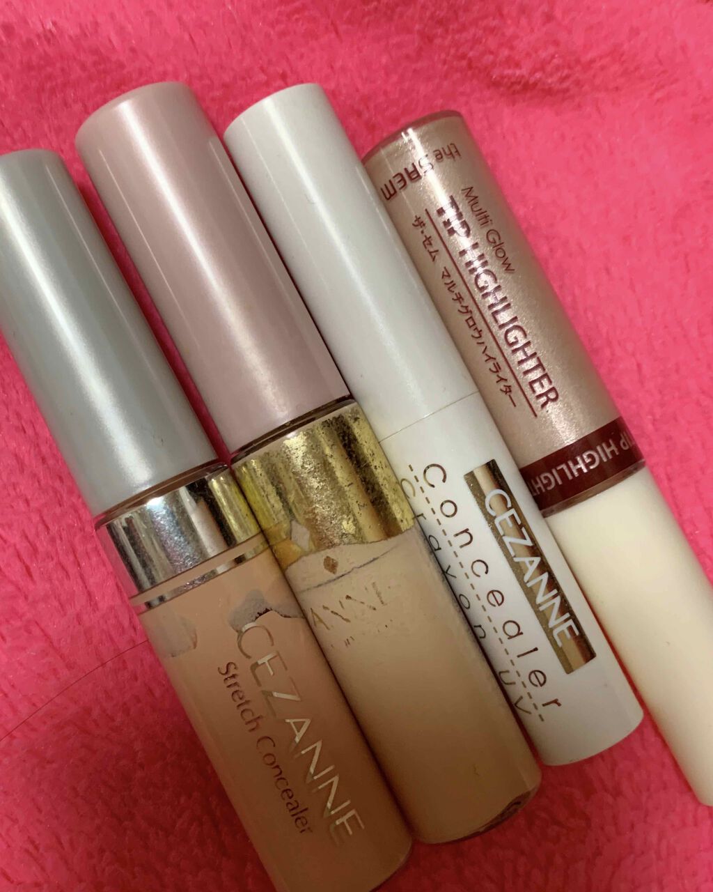 チップタイプって、柄の部分に、ついてる量で充分○ 細めのブラシで、こそぎ落とすように取ってちょうどイイ量に加減できるからね💕是非✨ ブライトナー ←めちゃくちゃ明るいから涙袋に最適 0.5アイスベージュ も涙袋に最適(^-^)💯 ハイライト としても💯✨ CEZANNEのストレッチコンシーラーは目元には最適💯 茶グマ隠し の為オレンジ系 kissコントロールカラーベース 全色コンプも💯✨ 透明感 血色感 シンデレラゾーン強調メイク 立体感メイク