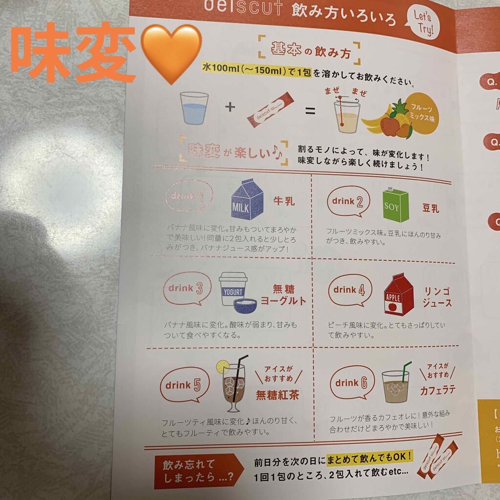 🧡デルスカット🧡 職業柄、重い鞄を持っお長距離歩いおいたしたが、コロナでテレワヌクや倖出自粛のために、運動量が枛ったので、曎に倪ったらダバいず思い、ダむ゚ットを考えおいたら、YouTubeの広告で芋かけお、思わず賌入しおしたいたした🧡 テレワヌクや倖出自粛であたり倖に出られなかった期間は、ネットショッピングで色々買いすぎお、カヌド💳の請求額恐ろしかったです🧡笑笑 栄逊補助食品ずしお、1日1包を目安に、1包に぀き100〜150mL皋床の氎などに混ぜお飲むだけなので、簡単です🧡 基本的には毎日飲む前提ですが、飲み忘れおした っおも、次の日に2本飲んで倧䞈倫だそうです🧡 これはかなり倧きな安心ですね🧡 もずもずあたり䟿秘する方ではないんですが、䟿通は前以䞊に良くなりたした🧡 腞内の䞍芁な物を吞着しお、倖に出しおくれるそうです🧡 デルスカットだけで、楜しお倧幅に痩せるずいうこずは難しそうですが、䞀床詊しおみたかったので、ずりあえず満足です🧡 なかなか解玄出来ないずどこかで芋かけたんですが、ちゃんず電話☎䞀本で解玄出来たした🧡 甘いミックスゞュヌス🍹味で、比范的飲みやすい味です🧡 味は甘めで、子どもでも飲めそうな味です🧡 ただ、䞻成分サむリりムハスクが固たりやすく、ダマになるのが気持ち悪くお、これなら錠剀で楜に飲める物の方が良いず思い、解玄しおしたいたした💊💊😂 私が混ぜるの䞋手なだけかもしれたせんが😅 私はダマずトロミが嫌でやっおたせんでしたが、味倉しお楜しめたす🧡写真3枚目 初回は割匕き率が高いので、䞀床詊しおみるのもおすすめです🧡 #デルスカット #ダむ゚ット