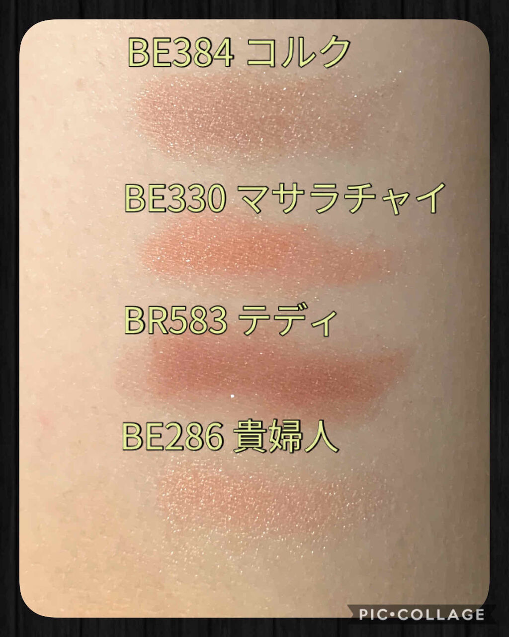 - <BE121 恋の達人> タルク、ワセリン、ジメチコン、セスキイソステアリン酸ソルビタン、ポリメタクリル酸メチル、ミネラルオイル、テトラヒドロテトラメチルシクロテトラシロキサン、テトラデセン、トコフェロール、エチルパラベン、(+/-)マイカ、酸化チタン、酸化鉄、合成金雲母、赤226、黄401、青404 <BE203 綿菓子> タルク、リンゴ酸ジイソステアリル、焼成セリサイト、トリエチルヘキサノイン、ワセリン、セスキイソステアリン酸ソルビタン、酸化亜鉛、ミリスチン酸亜鉛、エチルヘキシルグリセリン、ハイドロゲンジメチコン、酸化スズ、トリエトキシカプリリルシラン、トコフェロール、水酸化Al、テトラヒドロテトラメチルシクロテトラシロキサン、テトラデセン、クロルフェネシン、マイカ、合成金雲母、酸化チタン、酸化鉄 <BE286 ゴージャス姉妹> タルク、リンゴ酸ジイソステアリル、トリオクタノイン、セスキイソステアリン酸ソルビタン、ミリスチン酸亜鉛、シリカ、トコフェロール、テトラヒドロテトラメチルシクロテトラシロキサン、テトラデセン、エチルパラベン、マイカ、酸化チタン、酸化鉄、グンジョウ、酸化亜鉛、赤226 <BE330 マサラチャイ> タルク、リンゴ酸ジイソステアリル、メタクリル酸メチルクロスポリマー、トリエチルヘキサノイン、ワセリン、ミリスチン酸亜鉛、酸化亜鉛、セスキイソステアリン酸ソルビタン、エチルヘキシルグリセリン、アルミナ、酸化スズ、トコフェロール、テトラヒドロテトラメチルシクロテトラシロキサン、テトラデセン、クロルフェネシン、マイカ、酸化チタン、酸化鉄、合成金雲母、グンジョウ、赤226 <BE384 コルク> タルク、ワセリン、トリエチルヘキサノイン、ジメチコン、酸化亜鉛、セスキイソステアリン酸ソルビタン、メタクリル酸メチルクロスポリマー、ミリスチン酸亜鉛、エチルヘキシルグリセリン、酸化スズ、トリエトキシカプリリルシラン、トコフェロール、クロルフェネシン、マイカ、酸化鉄、酸化チタン、合成金雲母、グンジョウ <BK922 黒蜥蜴> タルク、リンゴ酸ジイソステアリル、トリエチルヘキサノイン、ワセリン、酸化亜鉛、セスキイソステアリン酸ソルビタン、ミリスチン酸亜鉛、エチルヘキシルグリセリン、テトラヒドロテトラメチルシクロテトラシロキサン、テトラデセン、トコフェロール、クロルフェネシン、マイカ、酸化鉄、合成金雲母、酸化チタン、コンジョウ、グンジョウ <BR331 シナモン> タルク、リンゴ酸ジイソステアリル、メタクリル酸メチルクロスポリマー、トリエチルヘキサノイン、ワセリン、セスキイソステアリン酸ソルビタン、酸化亜鉛、ミリスチン酸亜鉛、エチルヘキシルグリセリン、酸化スズ、テトラヒドロテトラメチルシクロテトラシロキサン、トコフェロール、テトラデセン、クロルフェネシン、マイカ、酸化鉄、合成金雲母、酸化チタン <BR332 胡桃> タルク、リンゴ酸ジイソステアリル、メタクリル酸メチルクロスポリマー、トリエチルヘキサノイン、ワセリン、酸化亜鉛、ミリスチン酸亜鉛、セスキイソステアリン酸ソルビタン、エチルヘキシルグリセリン、酸化スズ、トコフェロール、テトラヒドロテトラメチルシクロテトラシロキサン、テトラデセン、ヒドロキシプロピルセルロース、クロルフェネシン、マイカ、酸化チタン、酸化鉄、合成金雲母、コンジョウ <BR583 テディ> タルク、ワセリン、トリエチルヘキサノイン、シリカ、ジメチコン、酸化亜鉛、セスキイソステアリン酸ソルビタン、ミリスチン酸亜鉛、エチルヘキシルグリセリン、トリエトキシカプリリルシラン、酸化スズ、トコフェロール、クロルフェネシン、マイカ、酸化鉄、合成金雲母、グンジョウ、酸化チタン <BR703 コナ> タルク、リンゴ酸ジイソステアリル、焼成セリサイト、トリエチルヘキサノイン、ワセリン、ミリスチン酸亜鉛、酸化亜鉛、セスキイソステアリン酸ソルビタン、エチルヘキシルグリセリン、ハイドロゲンジメチコン、トリエトキシカプリリルシラン、酸化スズ、トコフェロール、クロルフェネシン、マイカ、合成金雲母、酸化鉄、酸化チタン、グンジョウ <GD822 ゴールデン> タルク、リンゴ酸ジイソステアリル、トリオクタノイン、セスキイソステアリン酸ソルビタン、トコフェロール、テトラヒドロテトラメチルシクロテトラシロキサン、テトラデセン、エチルパラベン、(+/-)マイカ、酸化鉄、酸化チタン、合成金雲母 <OR300 みちしるべ> タルク、リンゴ酸ジイソステアリル、メタクリル酸メチルクロスポリマー、トリエチルヘキサノイン、ワセリン、酸化亜鉛、ミリスチン酸亜鉛、セスキイソステアリン酸ソルビタン、エチルヘキシルグリセリン、ジメチコン、ハイドロゲンジメチコン、酸化スズ、トコフェロール、テトラヒドロテトラメチルシクロテトラシロキサン、ヒドロキシプロピルセルロース、テトラデセン、クロルフェネシン、マイカ、酸化チタン、酸化鉄、合成金雲母、黄4 <OR481 マリー> タルク、ワ