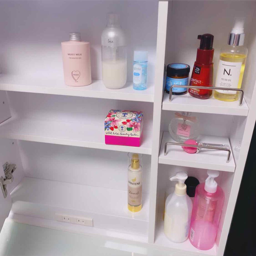ニトリのドレッサー買いました!まだ片付け途中で写真は一部ですが真ん中の大きい引き出しにコスメを入れています。奥の方は使わないコスメを入れて手前はよく使うコスメを収納しました。引き出しの中にDAISOクリアケースを入れてその中にコスメをたくさん...