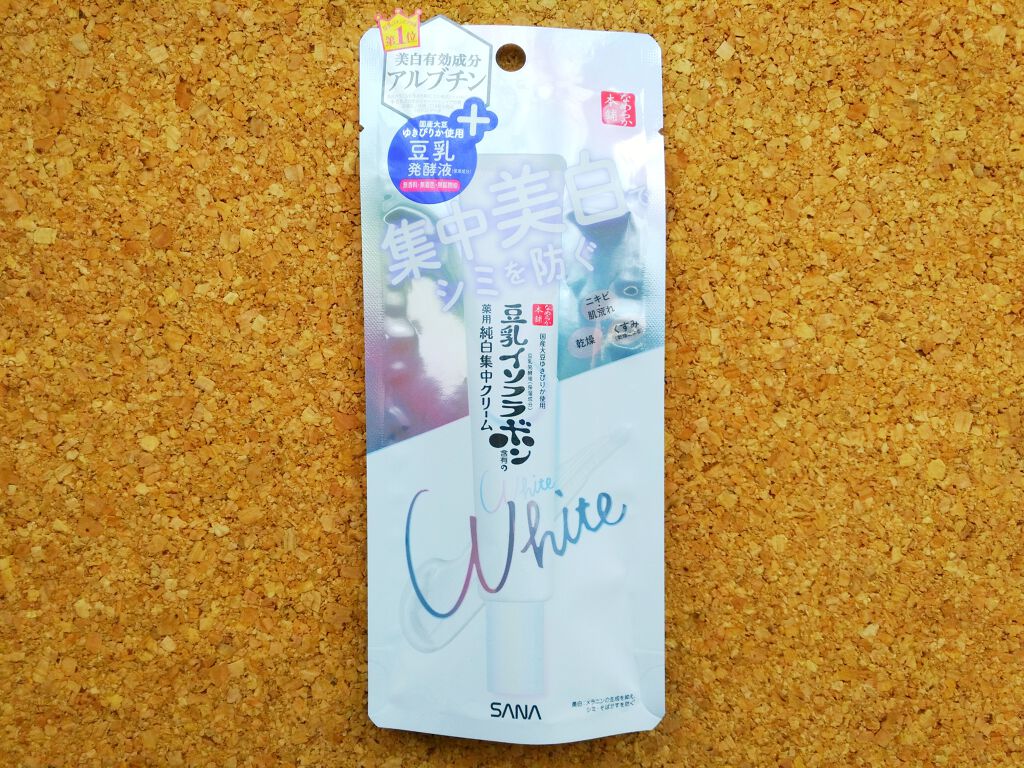 - <19g> 水、BG、フェノキシエタノール、エタノール、グリチルレチン酸ステアリル、アルブチン、ビタミンE、メチルポリシロキサン、豆乳発酵液、ダイズエキス、塩化ナトリウム、2-エチルヘキサン酸セチル、テトラ2-エチルヘキサン酸ペンタエリトリット、dl-α-トコフェリルリン酸ナトリウム、架橋型ポリエーテル変性シリコーン混合物、PEG-9 ポリジメチルシロキシエチル ジメチコン、dl-α-トコフェロール 2-L-アスコルビン酸リン酸ジエステルカリウム塩