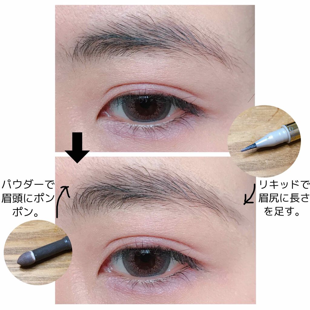 - 15時間*、無敵の眉尻。リキッド×パウダーで、液まで落ちない美人眉。 薄付きリキッド×立体感パウダーのW機能で、洗練された美人眉が夜まで続く。 リキッド・パウダーどちらもスーパーウォータープルーフ。 *仕上がりには個人差があります