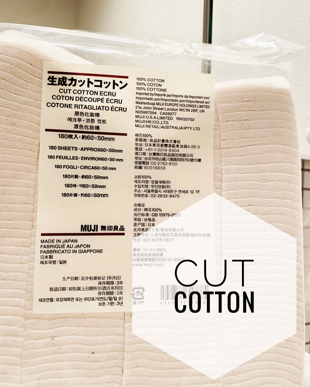 無印良品生成カットコットン180枚入り 299円無漂白のコットンです🌱以前も使ったことがあり、久しぶりにまた購入しました〜少し高くなってたけどそれでも大容量で嬉しい😊柔らかくて大きさも厚みもちょうど良くて使いやすいです♪主にポンイトメイクを落...