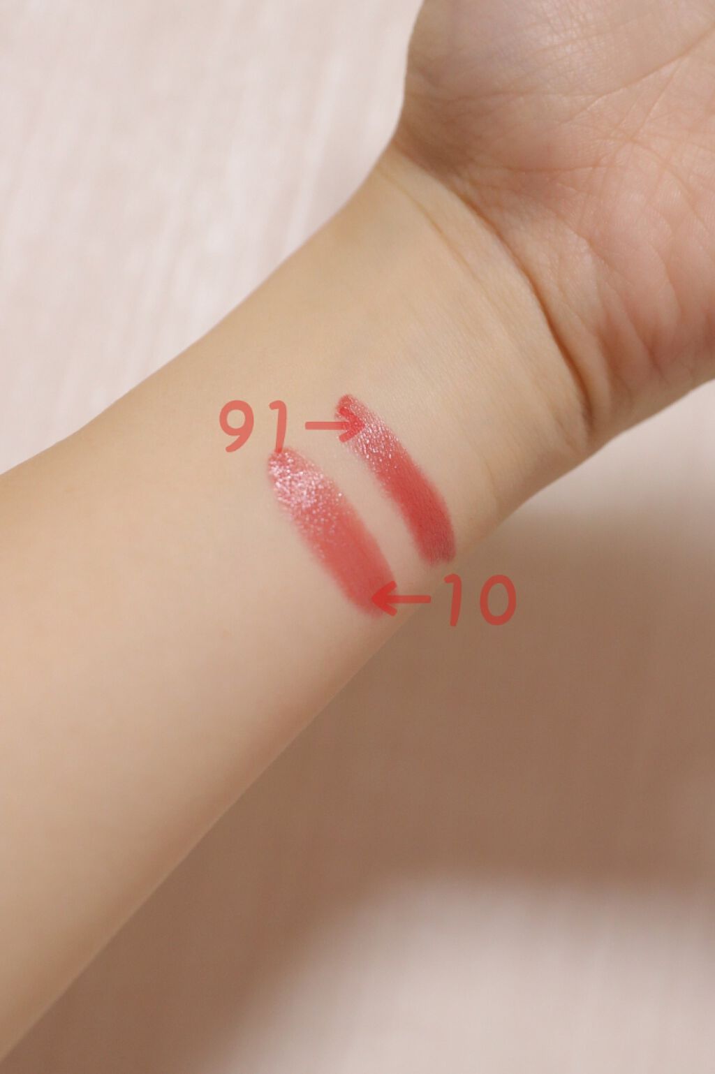 ペリペラ インクエアリーベルベットスティック10.1110.手に塗ると明るめのピンクに見えますが唇に塗ると派手すぎず、馴染みもよく可愛らしい口元になれます。11.コーラルのお色。こちらも馴染みのいい色で使いやすいです。このリップはマットリップ...