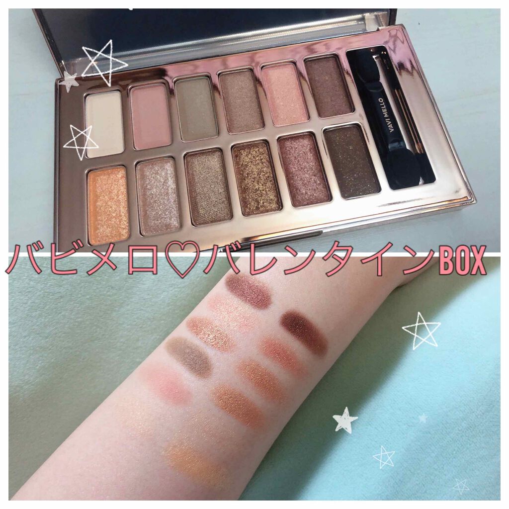 こんにちは!あーたんです!今回紹介するのはVAVIMELLOのバレンタインボックスです!商品説明「1秒ひと塗りまぶた」を実現する高発色アイシャドウパレットです。マスカルポーネ、ジンジャークランチ、チョコファッジなど、デザートをイメージした12...