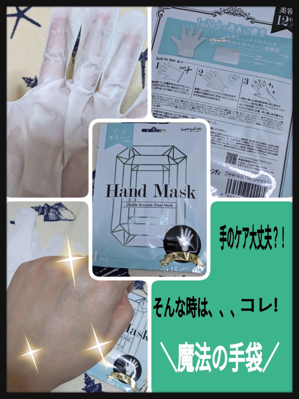 今回は先日キャンドゥパトロールで見つけたハンドマスクの投稿です✋✨わたしが見た店舗では3種類取り扱っていました!今回はまずシアバター配合のタイプを使ってみました!美容液たっぷりのマスクでしかも二重構造になっているので外側がフィルムカバーでマス...