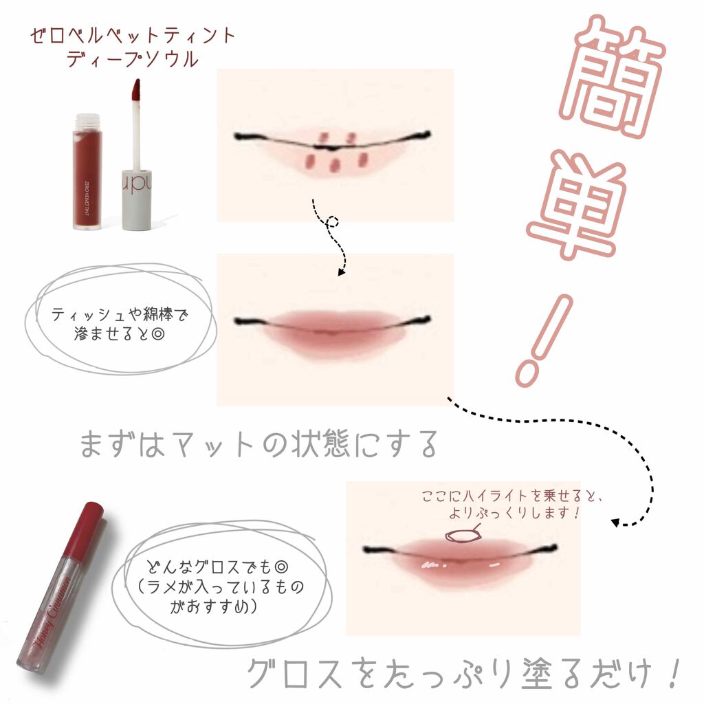 ティントなので塗り心地が良く、馴染みやすい印象です。 ティントって予想より薄かった…という事が多々ありますが、このリップティントは見たまんま、と言うよりそれ以上の求めていた発色でした! プルップルになるほどの水分量ではなく、唇にしっとり馴染むような感覚でした! ある程度保湿はしてくれますが、時間が経つと乾燥してくるので上からグロス等を塗ることをお勧めします. ティント特有のあま~い匂い、嫌いでは無いのですがこのティントリップは全く匂いがしないんです!