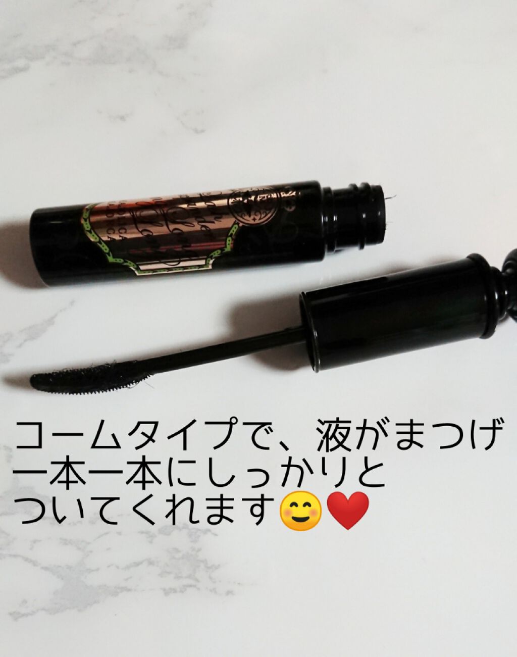 ウォータープルーフタイプで長さやカールキープはかなり好みなのですが、ちょっと乾くのが遅いなぁと思います。目の下につきやすい…😔 ぬるつけまつげで有名なマスカラ。細かい繊維が入っておりしっかりまつげに絡んでくれます。大きめでカーブのついている独特のブラシですがぬりやすいです。 コームタイプで塗りやすく、まつげにしっかり液がついてくれます。仕上がりも凄く綺麗にセパレートしてくれるし、繊維が沢山入っているので重ねれば重ねる程にまつげが伸びます✨ ブラシはどちらかというと大きく太めで重ねづけしてもだまになりにくいです。繊維が入っており綺麗に伸びてくれます。ちょっとにじみやすく、繊維が落ちてくる事あり🤦