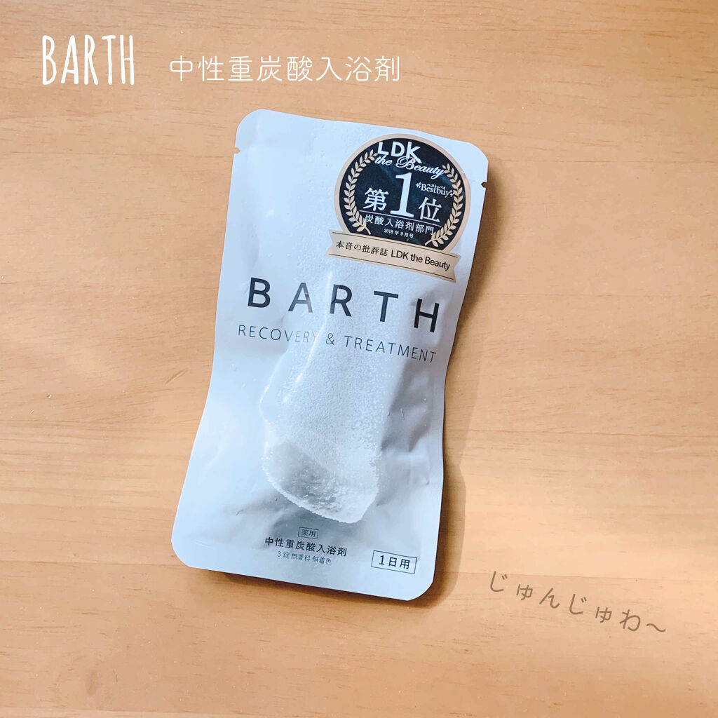 - 【医薬部外品】 ポイント① 溶け込む重炭酸イオン BARTH は独自の製造技術で、重曹とクエン酸の反応を科学的に計算されたタイミングで安定化させ、お湯を中性に保つことで 、重炭酸イオンの 8 ~ 9 割を湯中に溶け込ませることに成功しました。重炭酸イオンがしっかり溶け込んだお湯に入浴することで、有効成分が血流を促進し、疲労回復を促します。 ポイント② 自然由来のクエン酸 BARTHは、炭酸ガスを発生させるための酸を石油合成ではなく、自然生成物(でんぷん)の発酵で得られるクエン酸を使用しています。従来クエン酸は反応性が高くすぐに揮発してしまうため、重曹と配合して錠剤にすることが極めて困難だと言われてきました。 自然由来のクエン酸と炭酸ガスの組み合わせが、お肌のキメを整え柔らかくし、美肌効果をもたらします。 ポイント③塩素を中和するビタミンC配合 ビタミンCを配合したことで、一般家庭で使われる水道水の中に含まれている塩素を中和し、刺激の少ない肌触りのよいお湯を可能にしました。 敏感肌の方や、お子様にも安心してご入浴いただけます。 ポイント④無着色・無香料 着色料や香料などを一切使用せず、余計なものを削ぎ落としました。