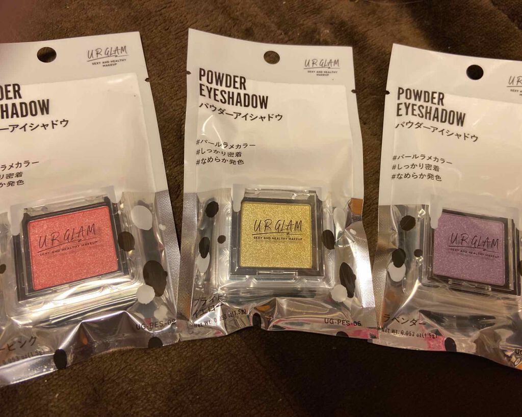 UR GLAMの単色アイシャドウ一時期めっちゃハマってダイソーに行っては買いダイソーに行っては買いっていうのしてた😶 このシャドウは偏光ラメ的な存在で光加減でピンクに見えたり青っぽく見えたりして面白い いい意味でこれが100均で購入出来るのはいいなと思った💭