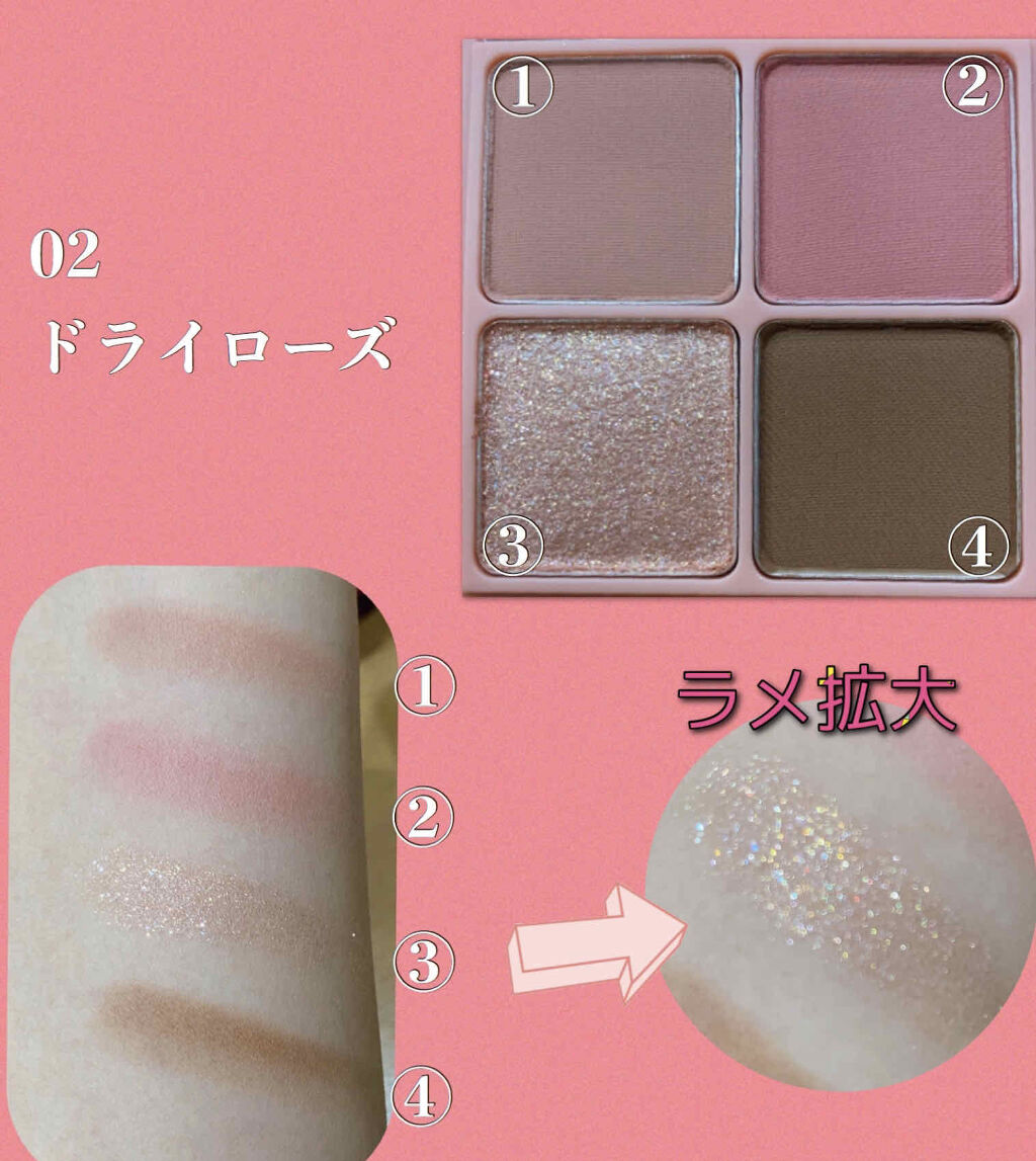ラメが天才🎓✨使いやすい4色パレット✨.•*¨*•.¸⭐️•*¨*•.¸¸⭐️•*¨*•.¸¸✨🍓rom&ndベターザンアイズ02ドライローズ¥1,760✨.•*¨*•.¸⭐️•*¨*•.¸¸⭐️•*¨*•.¸¸✨くすみピンク好きにはたまらな...