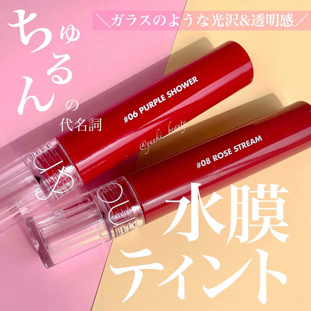 - 透明に輝くウォーターカバーを唇に乗せる ①カラーと光沢層が分離されているので透明感アップ #水膜ティント ②ウォーターティント並みの #色づき ③ベタつき感ゼロ、潤いだけを残す #ちゅるんとリップティント