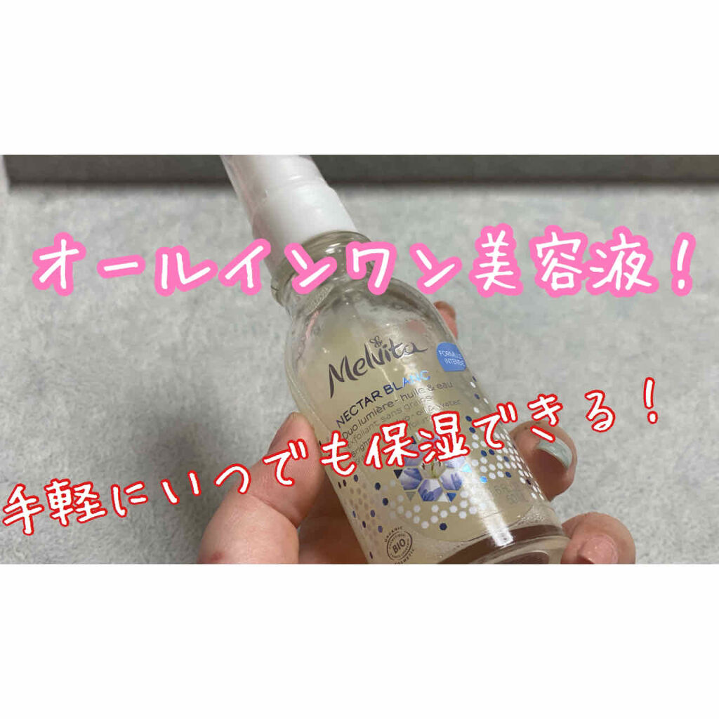 - メルヴィータのブライトケア製品としてたくさんの支持を集めてきた『光のオイル』こと、ネクターブラン ウォーターオイル デュオ。 ブライトケア効果の高い白ゆりオイル*1と、純白花エキス*2配合のウォーターの2層式で、オイル:ウォーター=1:3の黄金バランス。ブースターとして洗顔後すぐの肌にシェイクして使うことで、うるおいで満たしながら透明感があふれる肌土台を整えます。 *1: マドンナリリー根エキス+ヒマワリ種子油(スキンコンディショニング成分) *2: パンクラチウムマリチムムエキス・ヒメコウジ葉エキス(スキンコンディショニング成分)