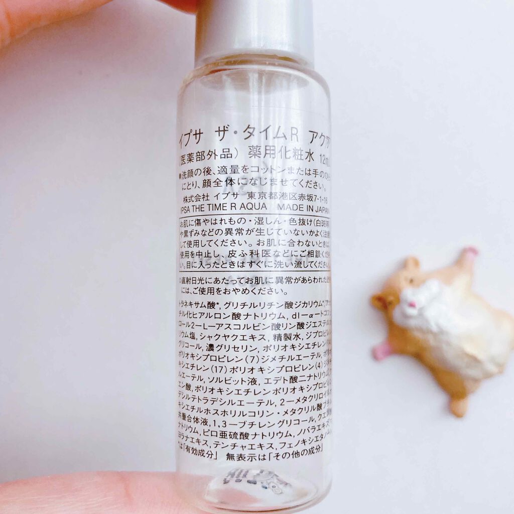 - (医薬部外品) うるおい成分を抱えた水*の層を肌表面につくり、キメを整え、ぷるぷると水*をまとったようなみずみずしい感触を持続させる薬用化粧水。 イプサ独自の保湿成分「アクアプレゼンターIII」※が、肌表面にうるおい成分を留まらせる人工的な水*の層をつくり、乾燥状態に応じて水分を与えるとともに逃さないようにするので、肌が水*で満たされた状態が持続します。 また、水*で満たされることでうるおいバランスの整ったテカリにくい肌に整え、有効成分が肌荒れや大人の肌のニキビを防ぎます。 アルコール無添加。 ※保湿成分アクアプレゼンターIII:アセチル化ヒアルロン酸ナトリウム、ポリオキシエチレン(14) ポリオキシプロピレン(7) ジメチルエーテル、ポリオキシエチレン(17) ポリオキシプロピレン(4) ジメチルエーテル、2-メタクリロイルオキシエチルホスホリルコリン・メタクリル酸ブチル共重合体液 *水…うるおいに対するイプサのイメージ表現 ノンコメドジェニックテスト済み ※全てのかたにニキビができないというわけではありません。 【価格改定】 100ml:旧価格2,640円(価格改定:2024年6月18日より2,970円) 200ml:旧価格4,400円(価格改定:2024年6月18日より4,730円) 300ml:旧価格5,500円(価格改定:2024年6月18日より6,050円) 薬用化粧水「ザ・タイムR アクア」のボトル容器を優れた成型性機能を持つリサイクルPETにて開発&導入 2025年1月14日(火)より、順次切替え開始