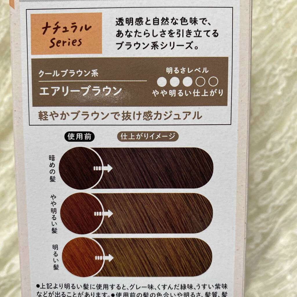 - 【医薬部外品】 【黒髪用ヘアカラー】 泡で簡単! 濃密泡が染まりにくい根元や見えない後ろにもしっかり密着して、ムラなく美しい仕上がりを実現。 透明感とやわらかさを表現するために、グレーやブルーの色味をブレンドした「サロン発想」の色設計。 毛髪保護成分*配合。指通りなめらか、しっとり質感の染め上がり。 *水解シルク液、軟質ラノリン脂肪酸 アフターカラー用リペアトリートメント(化粧品)つき。 ●セミロングヘア(肩から脇の下くらいの長さ)1回分 ●1回使いきりタイプ ●白髪用ではありません ※使用上の注意をよく読んで、正しくお使いください。 ※ヘアカラーでかゆみ、発疹、発赤がでたことのある方は、絶対に使用しないでください。