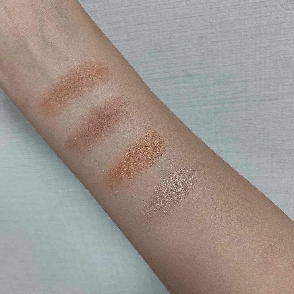 4番のジンジャー❤︎パウダータイプだけどなんかしっとり🤤色はオレンジのようなブラウンのような感じだけど付けたら見た目のようには発色しなくてオンレンジよりのピンクのような感じ💕サイズも持ち運びにもちょうどいい感じに小さい🙌💕...